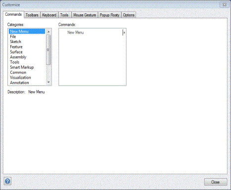 メニューにコマンドを追加するには、まず [カテゴリ] リストから任意のカテゴリーを選択します。次に [コマンド] リストから追加したいコマンドを任意の位置までドラッグします。幅広い水平の挿入マークが表示されたらドロップします。/コマンドは、ドラッグ & ドロップでメニュー内または別のメニューに移動できます。