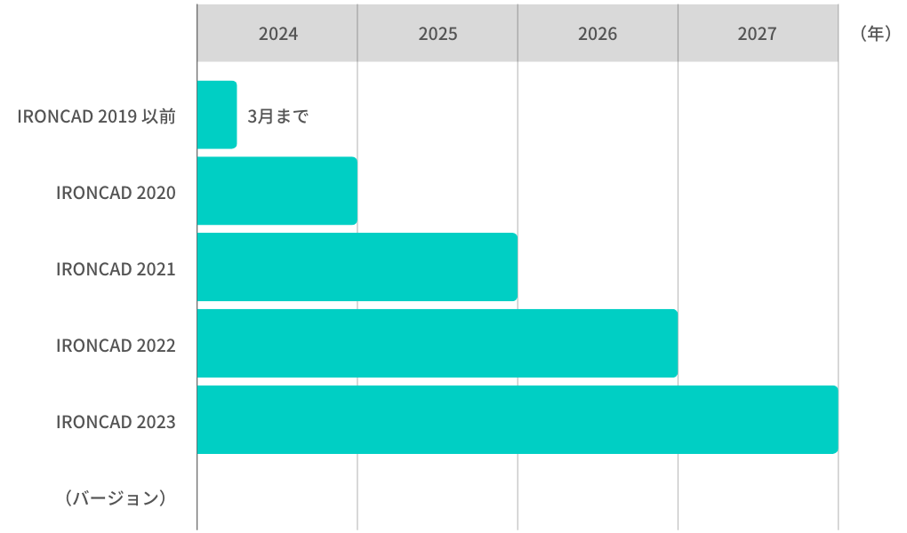 2024 年 3 月以降、米国 IronCAD, LLC. のポリシー変更により、IRONCAD の過去 4 バージョンのみアップグレードが可能になります。